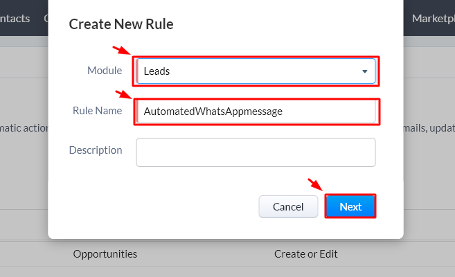 Rule Name: (you can set a Rule Name like this ,e.g. AutomatedWhatsAppmessage)