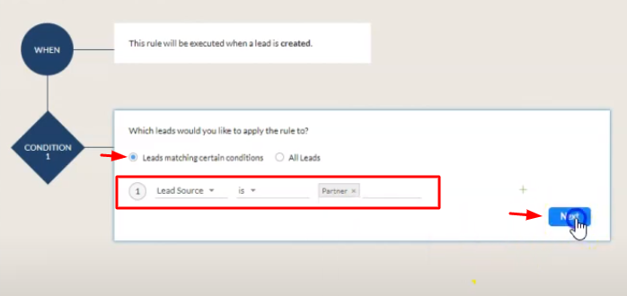 ①"Set some criteria for the workflow rule (e.g. only run it where the Lead source is Partner)"